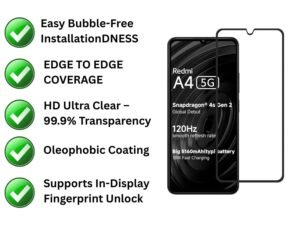 EXCICORE Tempered Glass for Xiaomi Redmi A4 5G (Black) Edge to Edge Screen Protector with Easy Installation Kit (Pack of 2)
