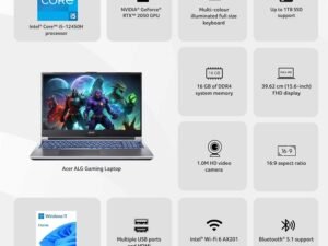 Acer ALG, Intel Core i5-12th Gen 12450H Processor, NVIDIA GeForce RTX 2050-4GB (16GB/1TB) FHD, 15.6″/39.62cm, 144Hz, Win 11 Home, Steel Gray, 1.99KG, AL15G-52, Premium Metal Body Gaming Laptop