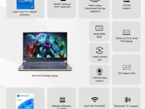 Acer ALG, Intel Core i5 13th Gen – 13420H, NVIDIA GeForce RTX 3050-6GB, 16GB RAM, 1TB SSD, FHD 15.6″/39.62cm, 144Hz, Windows 11 Home, Steel Gray, 1.99kg, AL15G-53 Gaming Laptop