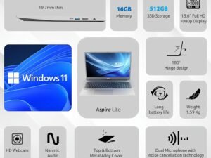 acer Aspire Lite AMD Ryzen 5-5625U Premium Thin and Light Laptop (16 GB RAM/1TB SSD/Windows 11 Home) AL15-41 39.62 cm (15.6″) Full HD Display Metal Body Steel Gray 1.59 KG