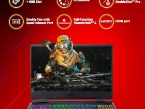 Acer Nitro 5 12th Gen Intel Core i5-12450H Gaming Laptop (16 GB RAM/512 GB SSD/RTX 3050 Graphics/144 Hz/RGB Backlit/Win11 Home) AN515-58 with 39.62 cm (15.6″) FHD IPS Display, Obsidian Black, 2.5 KG