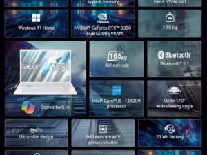 Acer Nitro Lite 16, Intel Core i5-13420H Processor,NVIDIA GeForce RTX 3050-6 GB GDDR6, 16GB/ 512 GB, 16.0″/40.64 cm, 165 Hz, Win 11 Home, White, 1.95 kg, NL16-71G, Backlit KB,Gaming Laptop