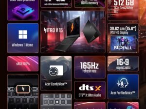 Acer NITRO V 15, AMD Ryzen 7-7445HS octa-core processor, NVIDIA GeForce RTX 4050- 6 GB GDDR6(16GB DDR5, 512GB)IPS FHD, 15.6″/ 39.62cm, 165Hz, Win 11 Home, Obsidian black, 2.1KG, ANV15-42 Gaming Laptop