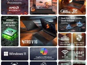 Acer Nitro V 16 AI-Powered Gaming Laptop AMD Ryzen 7-8845HS Processor with RTX 4060 8GB Graphics (16GB DDR5/1TB SSD/Win11 Home/WiFi6/165Hz/57Whr) ANV16-41, 16″ WUXGA IPS Display, Obsidian black, 2.5KG