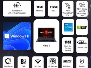 Acer Nitro V Gaming Laptop 13th Gen Intel Core i5-13420H with RTX 3050 Graphics 6 GB VRAM, 144Hz Display (16 GB DDR5/512GB SSD/Windows 11 Home/Wi-Fi 6),15.6″(39.6cms) FHD ANV15-51