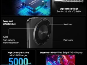 Acer Super ZX 5G (Carbon Black, 6GB RAM, 128GB Storage) | 120 Hz FHD+ Display | 5000 mAh Ultra-Thin Battery | Dimensity 6300 5G Processor | Sony 64MP AI Camera