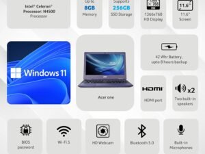 Acer One 11 Intel Celeron N4500 (Windows 11 Home/ 8 GB/ 256 GB SSD) 29.64 cm (11.6″) Anti Glare HD Laptop, Z8-284, 1.1 KG, Deep Blue