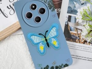 Jkobi Back Cover Case for Redmi A4 5G | Xiaomi Redmi 14C (Soft Butterfly Embroidery | Women Teen Girls | Camera Protection| Matte Silicone)