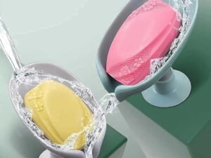 ADREAL (Pack of 2) Leaf-Shape Self Draining Soap Dish Holder, Easy Clean Soap Dish for Shower with Suction Cup Creative soap Box, for Bathroom, Kitchen, Bathtub, Wash basins (Multicolor)