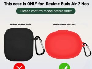 KACA Protective Shockproof Silicone Cover Case with Buckle Compatible with Realme Buds Q2 / Realme Buds Air 2 Neo Earbuds (Black)