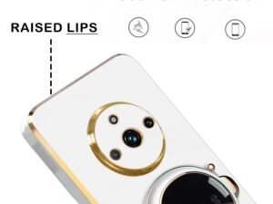 KARWAN®️ 3D Astronaut with Folding Stand Back Cover Case Compatible for Redmi A3 2024 | Slim electroplated case | Stand case | Soft TPU | Space Astro Theme | Camera Protection – White