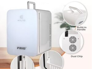 KILIG Frio+ Portable Mini Fridge 10 Litre with Dual Cooling Chips and Warmer Function, Skincare Fridge for Bedroom, Thermoelectric Cooler and Warmer Small Refrigerators for Drink, Office, Car, White