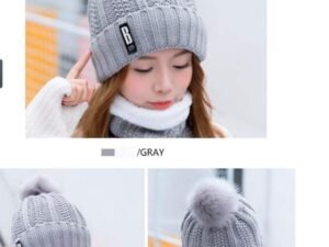 Alexvyan Imported 1 Set Ball Cap and Scarf Soft Warm Snow and Air Proof Fleece Knitted Cap (Inside Fur) Woolen Beanie Winter Cap with Scarf for Women Girl Ladies