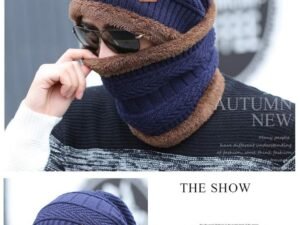 Alexvyan Men’s Woollen Fleece Knitted Fur Inside Imported Warm Soft Snow and Air Proof Beanie Winter Cap with Scarf (Blue)