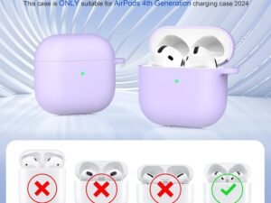 Meyaar for Apple AirPods 4 Case Cover with Keychain, Soft Skin Silicone Case Cover, Full Protective Case Cover Compatible with Apple AirPods 4 Case 2024 (Lilac)