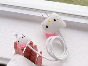Meyaar Silicone Protective Case for Apple 20W & 18W iPhone USB-C Power Adapter Charger and for USB Lightning Cable, 3D Cartoon Case for iPhone Charger 18W/20W Only (Kitty (White))