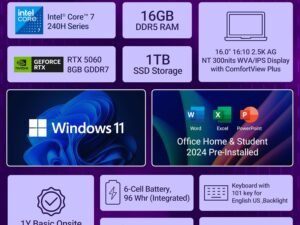 Alienware 16 Aurora, Intel Core 7-240H, NVIDIA RTX 5060-8GB GDDR7, 16GB DDR5 RAM, 1TB SSD, WQXGA 16″/40.64 cm, 2560×1600, Windows 11, Interstellar Indigo, 2.57 Kg, Cryo Chamber Cooling Gaming Laptop