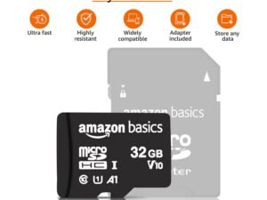 Amazon Basics 32GB MicroSDHC Memory Card with Adapter, Upto 98MB/s, IPX6, Temperature & Shock Resistant