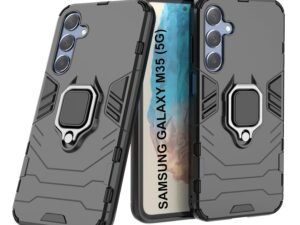 amazon basics Armor Bumper Back Case Cover for Samsung Galaxy M35 5G | Stylish Ring Holder & Inbuilt Stand | Shockproof TPU Protective Design | 360 Degree | Samsung M35 5G Back Cover – Black