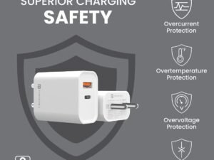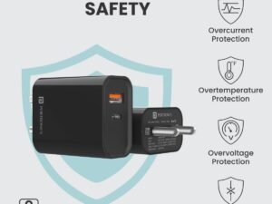 Portronics Adapto 45 22.5 W Mobile Charger Adapter with Dual Port (USB A + PD Type C), Fast Charging, Short Circuit Protection, Wide Compatibility (Black)