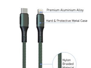 Portronics Konnect CL 20W POR-1067 Type-C to 8 Pin USB 1.2M Cable With Power Delivery & 3A Quick Charge Support, Nylon Braided For All Type-C and 8 Pin Devices, Green