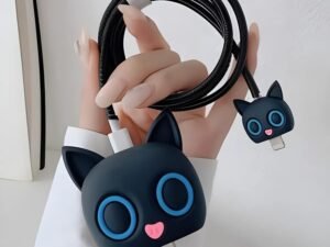 Protective Case Cover 4in1 Compatible with Apple 20W/18W iPhone USB-C Power Adapter | iPhone Charger Protector Case & Wire Saver | 3D Cartoon Black Cat Charger Cover