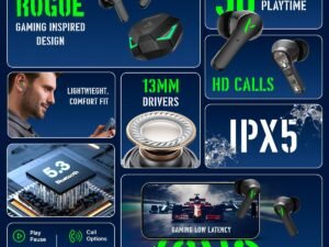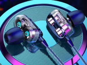 pTron Boom Ultima 4D Dual Driver, in Ear Gaming Wired Headphones with in-Line Mic, Volume Control & Passive Noise Cancelling Boom 3 Earphones – (Dark Blue)