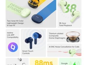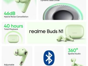 realme Buds N1 True Wireless in-Ear Earbuds with 46dB Hybrid ANC, 360° Spatial Audio, 12.4mm Dynamic Bass Driver, Upto 40Hrs Battery and Fast Charging (Energizing Green)