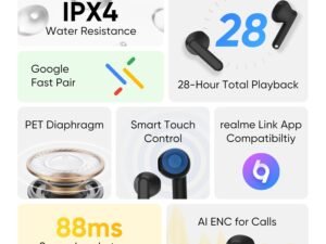 realme Buds T01 Truly Wireless in Ear Earbuds with AI ENC for Calls, 13mm Dynamic Driver, Upto 28Hrs Battery,88mm Latency,Bluetooth V5.4 & Google Fast Pair (Black)