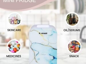 ROCKWELL 8L Retro Mini Fridge and Warmer, AC/DC Portable Thermoelectric Cooler/Warmer for Skincare, Cosmetics, Snacks & Medicine – Blue