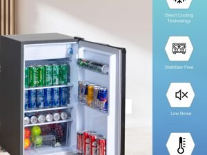 ROCKWELL 91L Mini Fridge with 5 Year Warranty, Direct Cool Technology, Single Door Refrigerator Ideal for Bedroom, Small Spaces, Hostels, and Offices, Grey