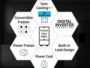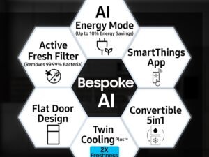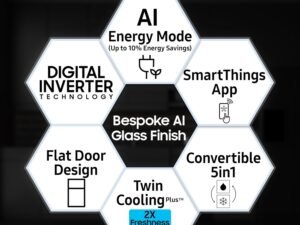 Samsung 350 L, 3 Star, Convertible 5-in-1, Digital Inverter, Frost Free Double Door, WiFi Enabled Bespoke AI Refrigerator (RT38DG5A4DS8HL, Elegant Inox, Silver)