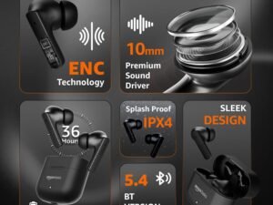 Amazon Basics True Wireless in Ear Earbuds with Mic, Up to 36 Hours Play Time, Low-Latency Gaming Mode, IPX4 Water-Resistance, Bluetooth 5.4 (Black)