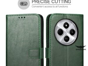 SHINESTAR PU Leather Flip Cover Wallet Case with TPU Silicone Case Back Cover for Redmi A4 5G | Poco C75 5G | 14C 5G | Poco M7 – Unique Green