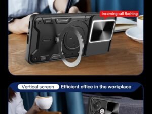 SPAZY CASE® Redmi 13C 5G Back Case | Hybrid Case with 360 Degree Rotating Finger Ring Holder + Slider Shutter Camera Protection Cover for Redmi 13C 5G – Black