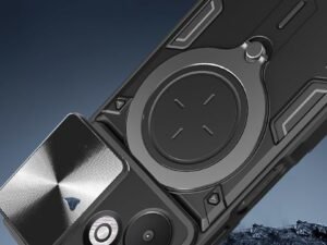 SPAZY CASE® Redmi 13C 5G Back Case | Heavy Duty Hybrid Case with 360 Degree Rotating Finger Ring Holder + Slider Shutter Camera Protection Cover for Redmi 13C 5G 5G – Black