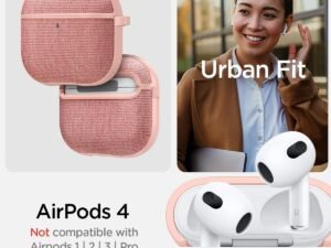Spigen 2024 AirPods 4 / AirPods 4 ANC Case, Carabiner Included, [Premium Fabric] [Light & Compact], Urban Fit – Rose Gold