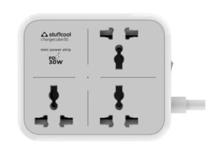 Stuffcool ChargeCube 30 Mini Surge Protector with 3 AC Ports and 30W Dual Port Type C PD PPS Output with Super Fast Charging, Charging iPhones 50% in 30 mins, Charges MacBook Air