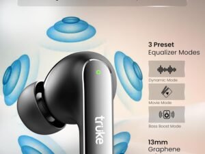 truke New Launch Aura Pro True Wireless in Ear Earbuds w/ 60H Battery & Fast Charge Ear Buds, 13mm Titanium Drivers, Dual Pairing, 4-Mic ENC TWS, 40ms Low Latency Gaming, Made in India -MidnightBlack