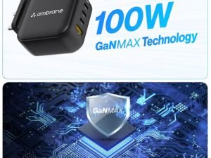 Ambrane 100W Charger Adapter, 4 Ports – 3 Type C & 1 USB for iPhone & Android, MacBook & Type C Laptop, Fast Charger with PD Technology & GaN Technology, for All Types of Devices (RAAP H100, Black)