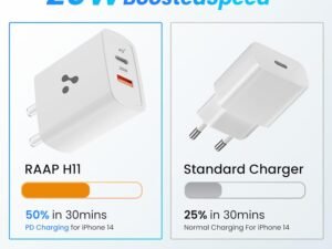 Ambrane 20W Dual Port BoostedSpeed USB Charger with Power Delivery & Quick Charge, Made in India, Multi-Layer Protection, iPhone & Android Compatibility (Raap H11, White)