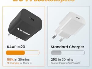 Ambrane 20W Type C Mobile Charger Adapter, Fast Charging for Android, iPhone 14/13,13/12/11/X & Pro, Max Series & Other Type C Enabled Devices, PD Technology, BIS Certified (Raap M20, Black)