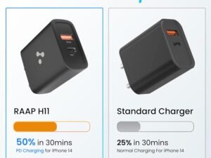 Ambrane 20W USB Dual Port BoostedSpeed Charger with Power Delivery & Quick Charge, Made in India, Multi-Layer Protection, iPhone & Android Compatibility (Raap H11, Black)