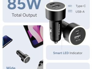 Ambrane 85W Car Charger, Mobile & Laptop Charging (MacBook & Type C Laptops), Glowing Light, Dual Port Fast Charging, 65W Type C PD, 20W USB for iPhone, Android, iPad & Other Devices (Black, C85R)