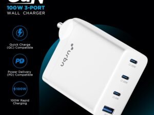 URBN 100W GaN Fast Charger | Quad Port (3 Type-C + 1 Type-A) | QC & PD Compatible | Samsung Super Fast Charging 2.0 | 12-Layer Protection | Compact Travel Adapter for Laptop, iPhone, Samsung, MacBook
