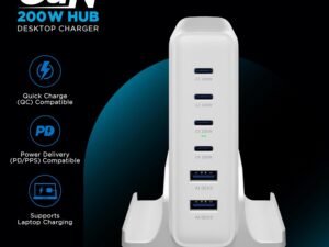 URBN 200W GaN Power Hub | 6-Port Desktop Charger (4 USB-C + 2 USB-A) | QC, PD & PPS Compatible | Super Fast Charging 2.0 | 12-Layer Protection | 1.5M Power Cord for Laptop, iPhone, Samsung, MacBook
