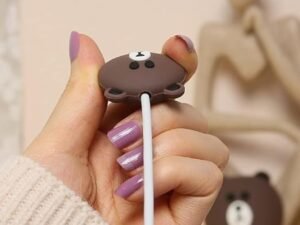 Veemok 4-in-1 Silicone Charger Case Cover with Cable Protector & Wire Saver – Compatible with Apple iPhone 18W/20W USB-C Power Adapter – 3D Cartoon Bear Design (Brown)