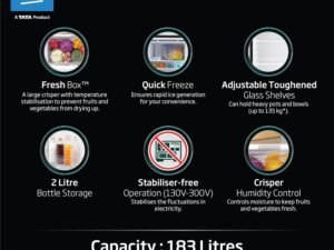Voltas Beko, A Tata Product 183 L 2 Star Direct Cool Single Door Refrigerator (RDC215D/S0XER0M0000GO, Hairline Blue, With Fresh Box Technology and Chiller Zone, Stella blue)
