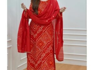 ANNI Designer Bandhani Embroidery Kurta Plazzo Set with Dupatta – Women Kurta Sets for Women | Kurti Set for Women | Suit Set for Women Cotton