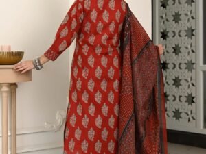 Anni Designer Cotton Ajrakh Print Kurta Plazzo Set with Dupatta | Kurti Set for Women | Suit Set for Women Cotton | Kurti Pant Set with Dupatta Festive Kurta Set